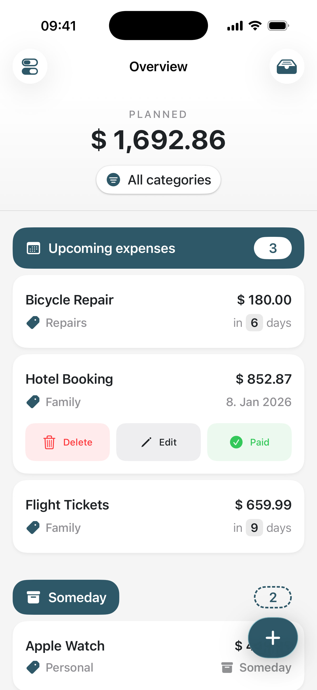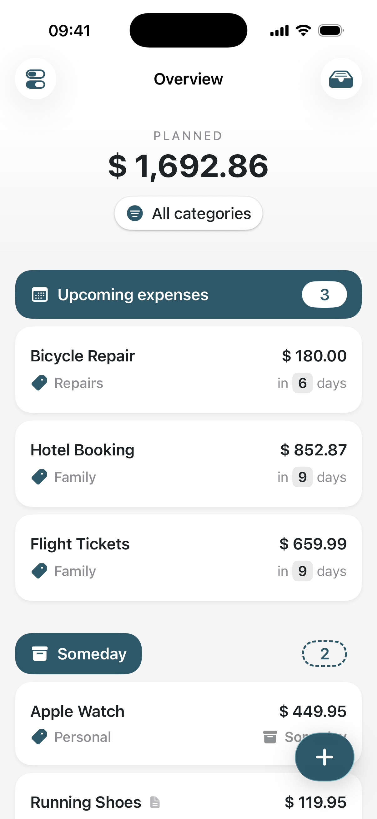 ToSpend helps you to keep track of your upcoming one-time expenses.